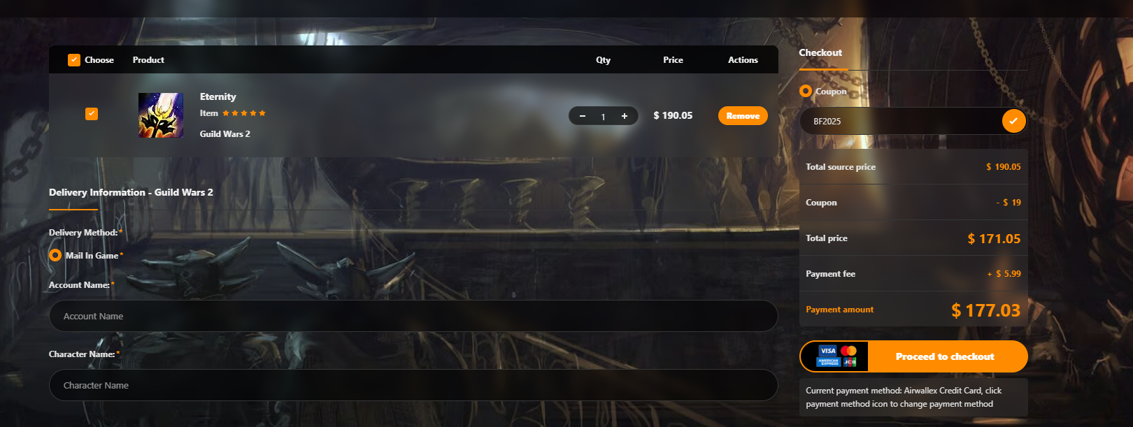 🎉 Black Friday is live! 📅 November 27 – December 1 🔥 Enjoy an exclusive 10% OFF on all Guild Wars 2 gold, items, and boosting services